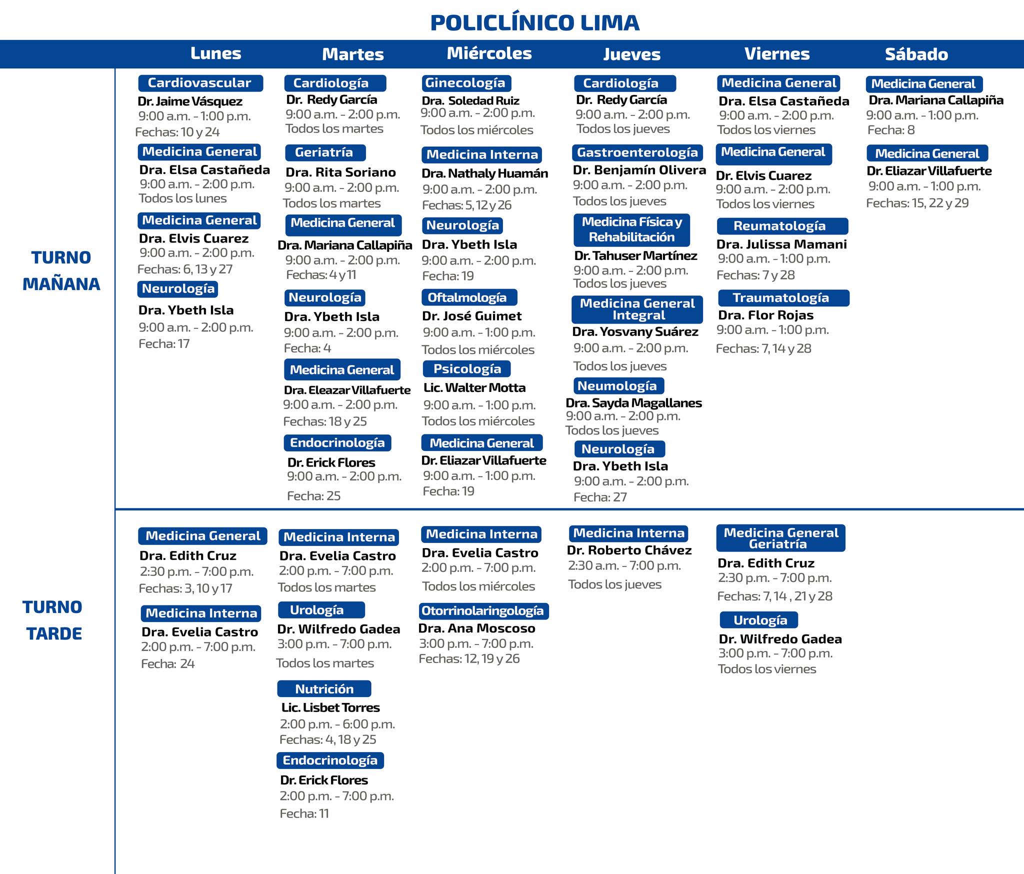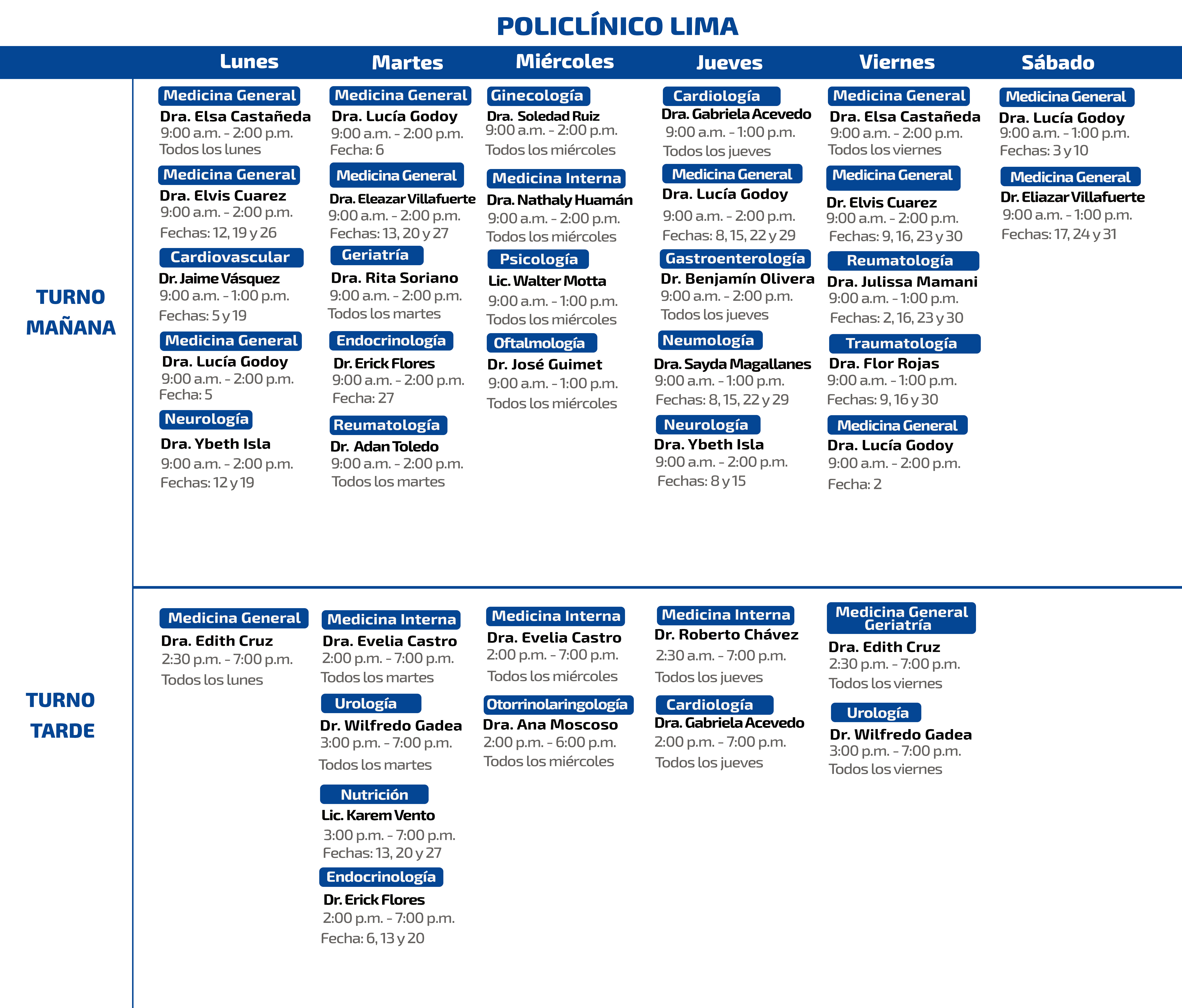 Nuestros afiliados pueden atenderse en cualquiera de los policlínicos, con solo presentar su DNI.