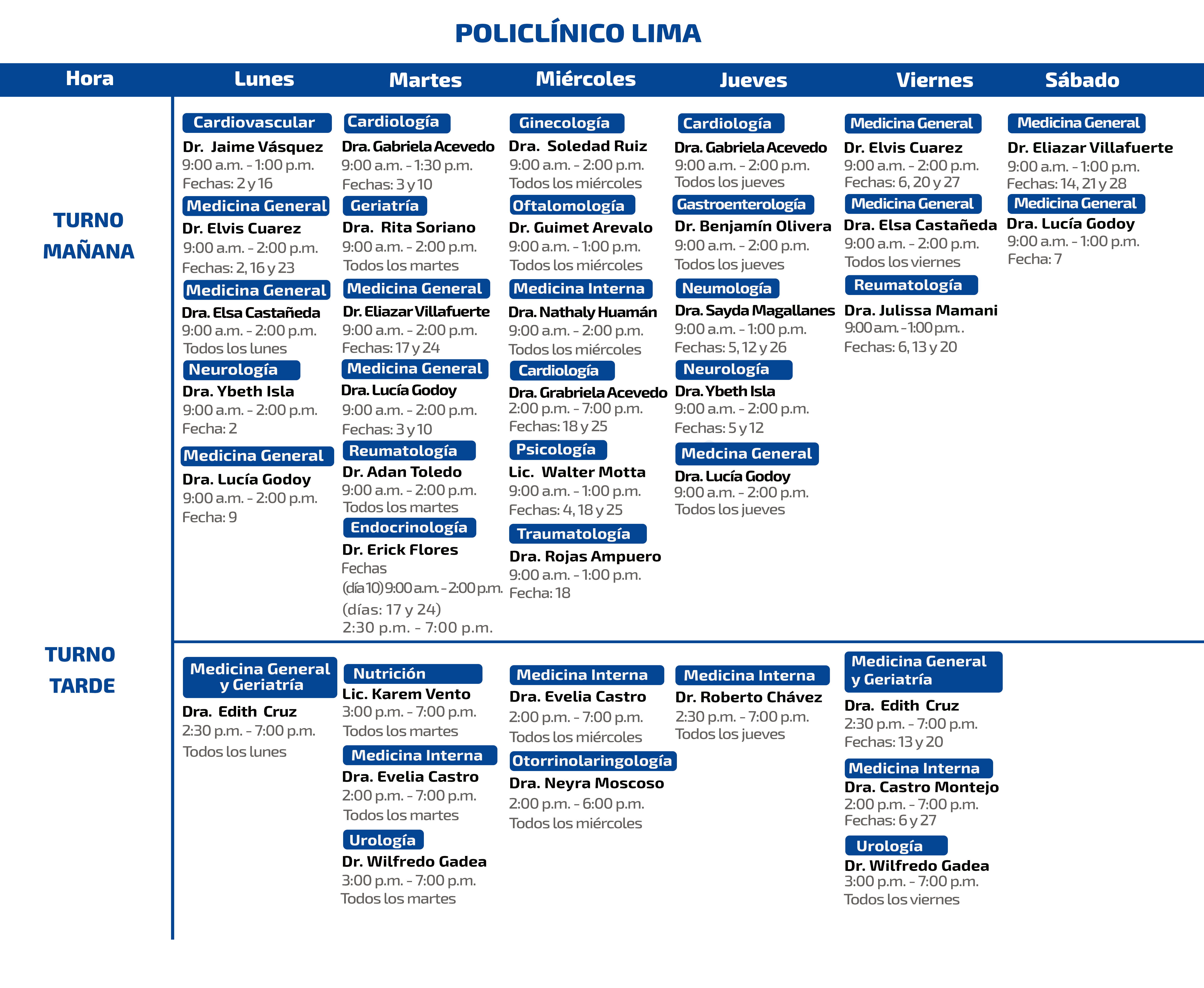 La atención es totalmente personalizada, por doctores que laboran en clínicas y hospitales de reconocida trayectoria.